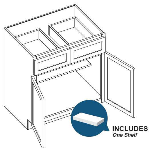 All of our cabinetry is solid wood with Birch doors and face frames. The sides and backs are 1/2" 7 Ply Plywood with 3/4" plywood shelves. The doors have soft close hinges and the drawer boxes are dovetailed with undermount, full extension soft close drawer glides.